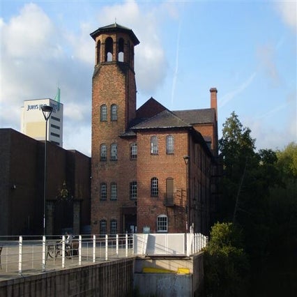 The Derby Silk Mill, Silk Mill Lane, Grade II Listed. The original mill was established by John Lombe in 1721 to house Italian silk-throwing machines. It was destroyed by fire in 1910 and this building was built in its place. Now a Museum
