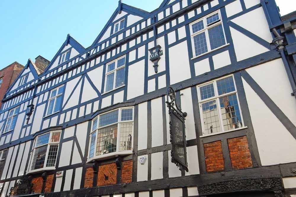 Ye Olde Dolphin Inne, 5 Queen Street, Grade II Listed. Built in the late 16th century but the timber framed exterior was remodelled in the early 20th century